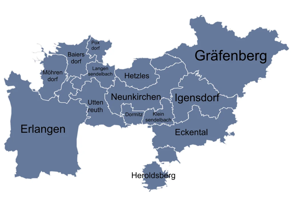 - Nördliches und östliches Umland inkl. Baiersdorf, Möhrendorf, Poxdorf